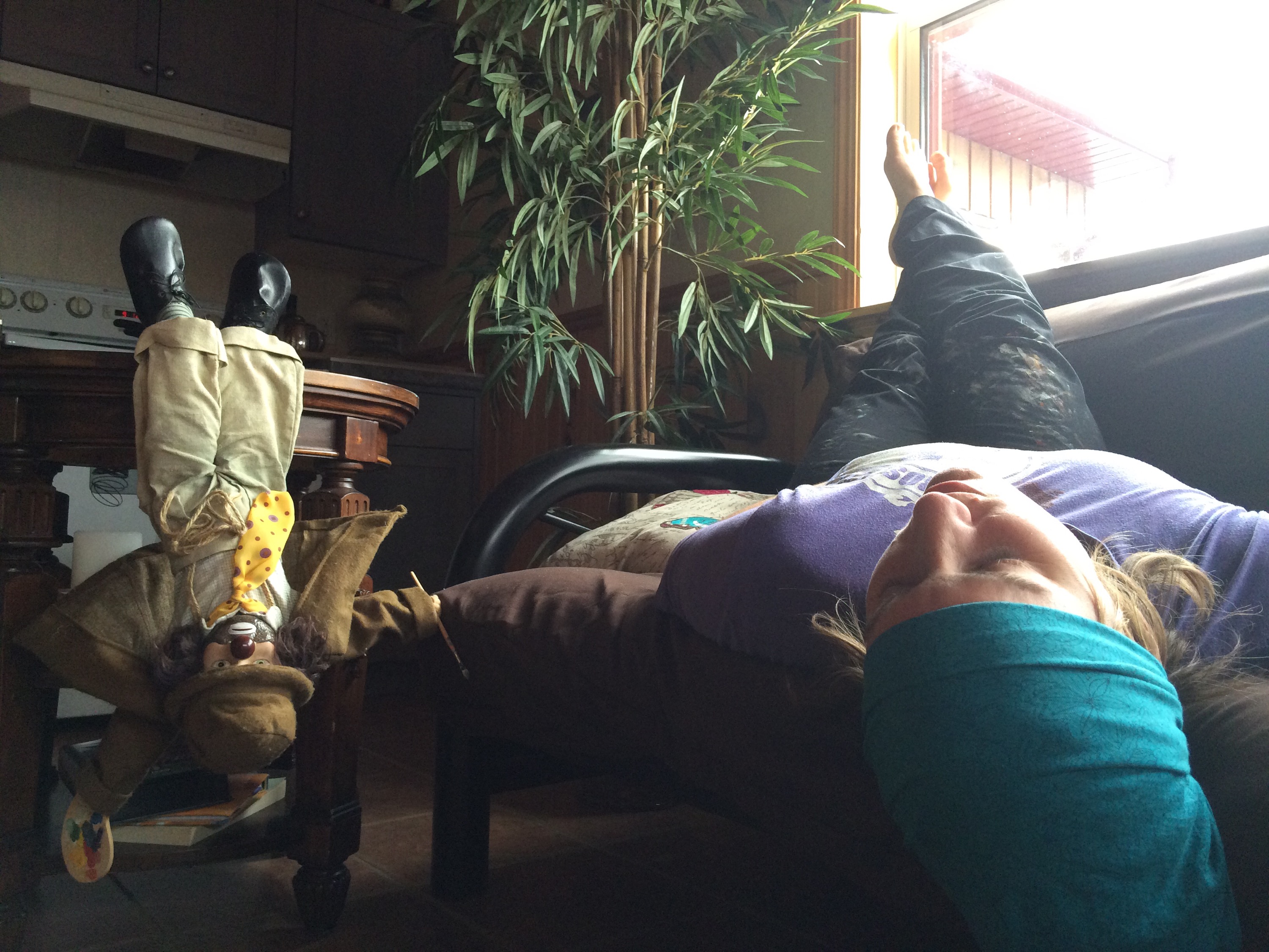 Donc après un peu de peinture partout, pas d’espace libre sur mon mur, un système respiratoire intoxiqué, 23 tableaux et quatre tambours plus tard, mon petit cloune et moi avons décidé que ça suffit. Temps d’une pause!