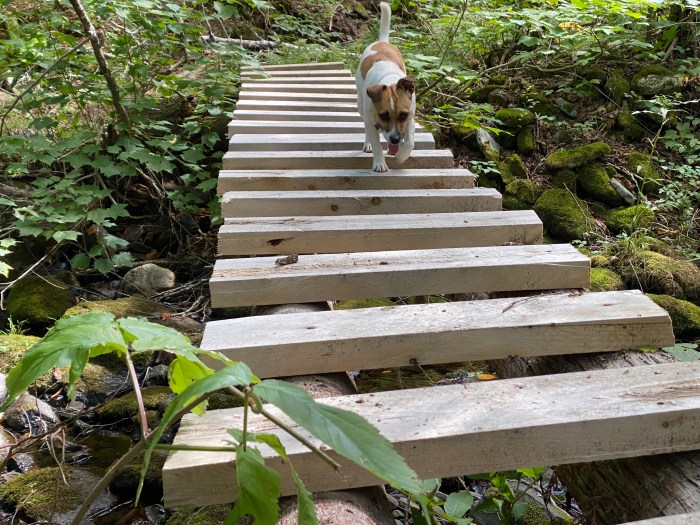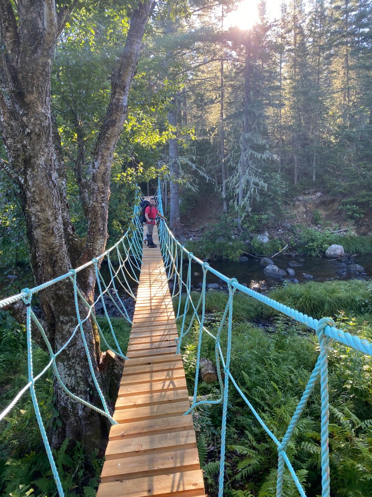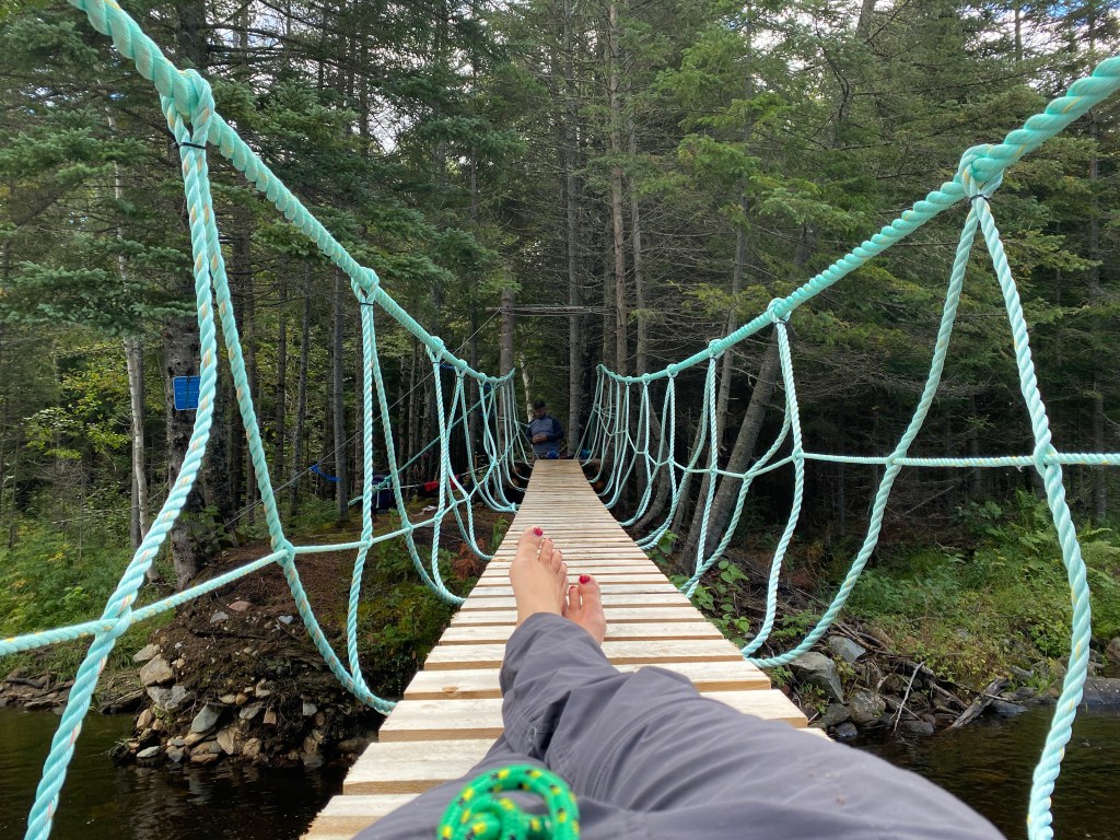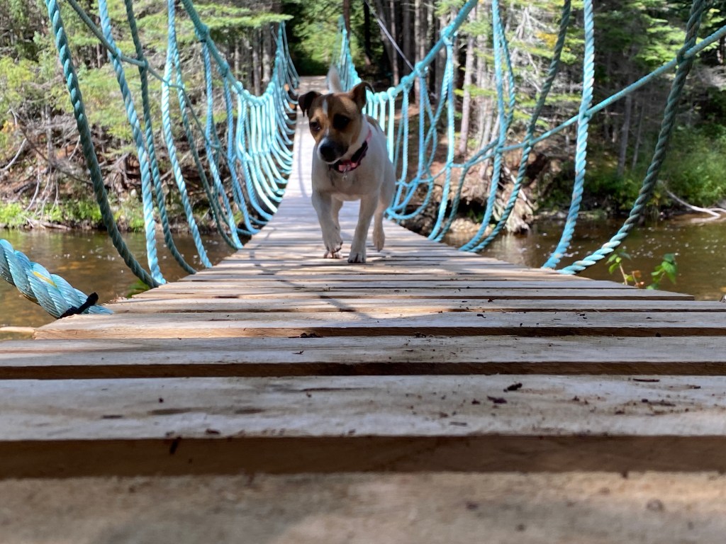Old bridges, new bridges. Little bridges, Rope bridges. A great mix to this Acadian forest.