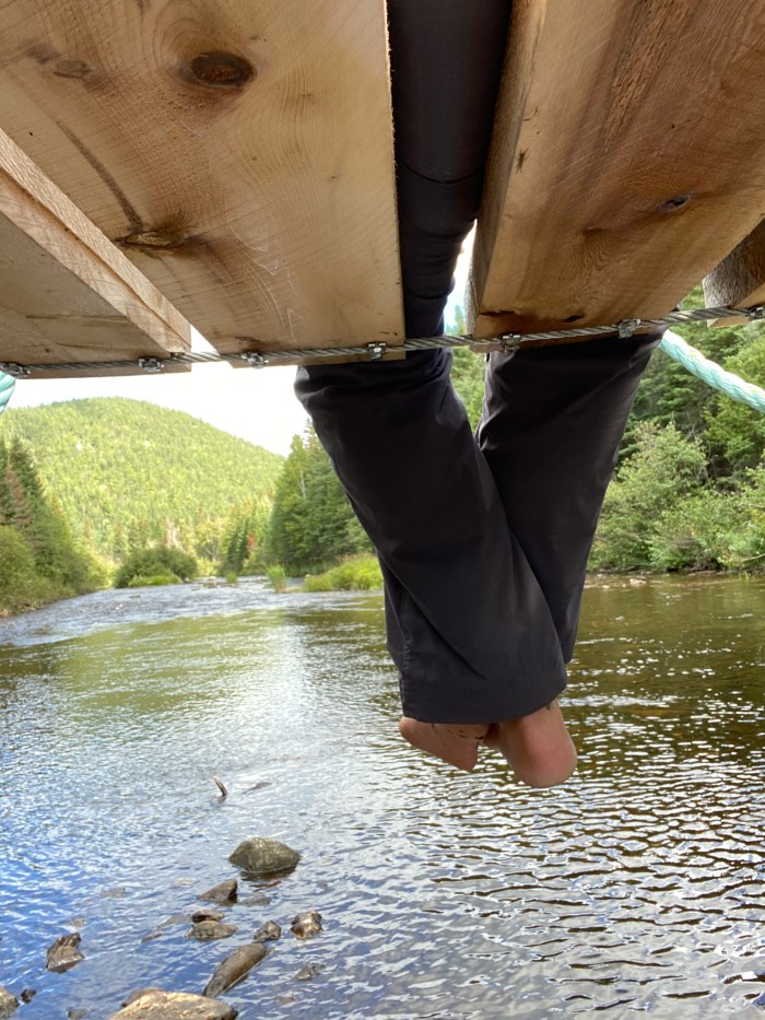 The trail is already way harder than expected at this point. Took us about 3 hours to get to Nepisiguit Brook. I get to appreciate another beautiful rope bridge again. But we got off trail, left turn, to go lunch on the rocky beach by the river.
