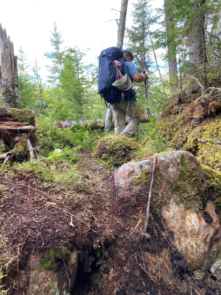 Any avid hikers would understand why one would be hiking like he’s chopping wood infront of them with their poles- like an uncontrolled karate kid. Cob webs! Between the moose likely way ahead, or Jason, I’m grateful someones doing it instead of me.
