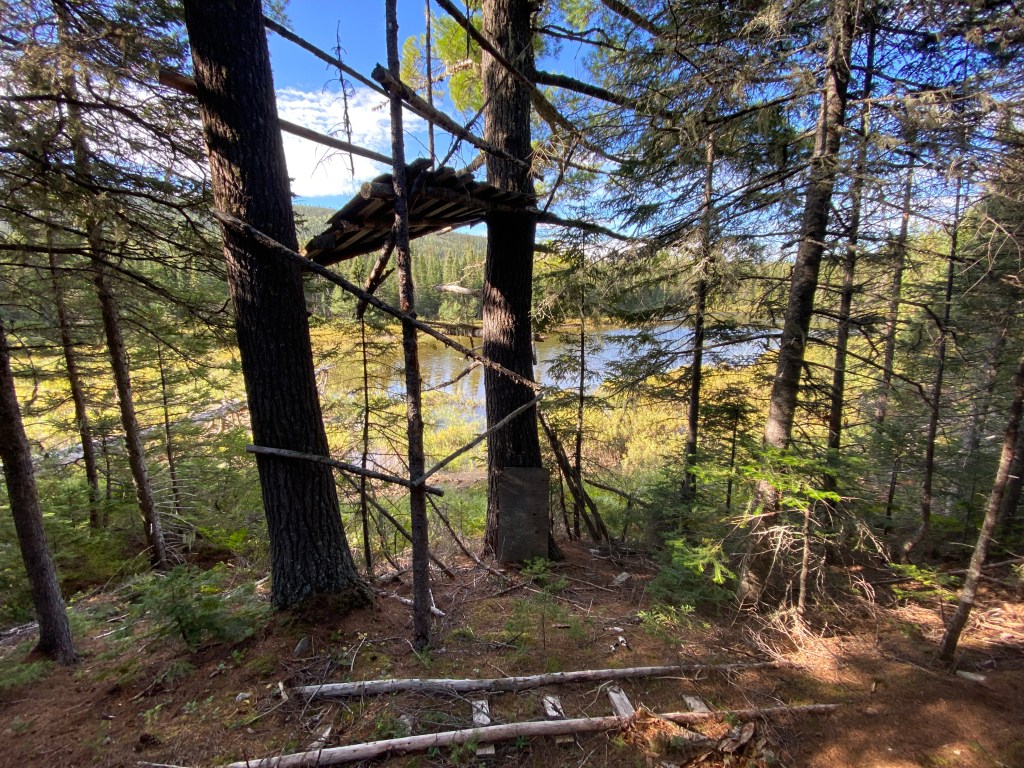 Old stuff! I love finding old stuff on the trail. It’s a reminder that there really was life here a long time ago. Some older than others. From the Mi’gmaq people to later on, the mining or forestry workers. I like imagining how it could’ve been way back. They didn’t have these little dried food package or high-tech tent and backpacks and equipment. Life was hard. Smart those people. “Tap the can”. It’s Jason and I’s new game. You have to tap what you see… maybe at the same time, as a sign of respect for those hardworking people. Today’s finds were a cooking pot, and oil tin can. We did walk by a few abandoned moose stands too.