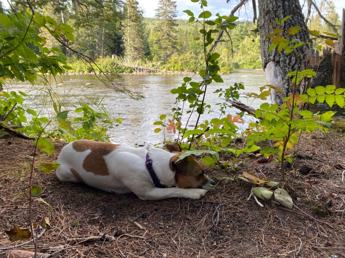 We all opted for a nap too. I think Jason fell asleep. I’m laying down right by the falls, listening to the dance of the water. It’s so powerful and loud. Humans are so small. My day dreams are crushed by a little white Macy. Jumped on me out of nowhere. Scared the shit out of me!