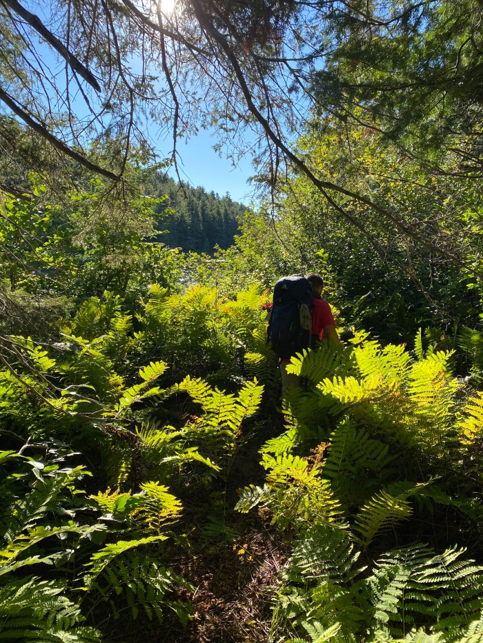 Here we are, through fern country! If you like fern, this is it folks! Come to section I-J. I thought I had walked through sections with ferns before, but this is the winner of all fern trails. The goddess of ferns. It’s a fernification. Remember I mentioned something about the rain? It poured last night. All these ferns are green.. and shiny. Wet and shiny. So guess what …. it’s wet. Thank god… again… for gaters. Piece of advice: wear gaters if you plan on hiking this trail. Un décontournable. Gaters and Ben and Jerry’s.