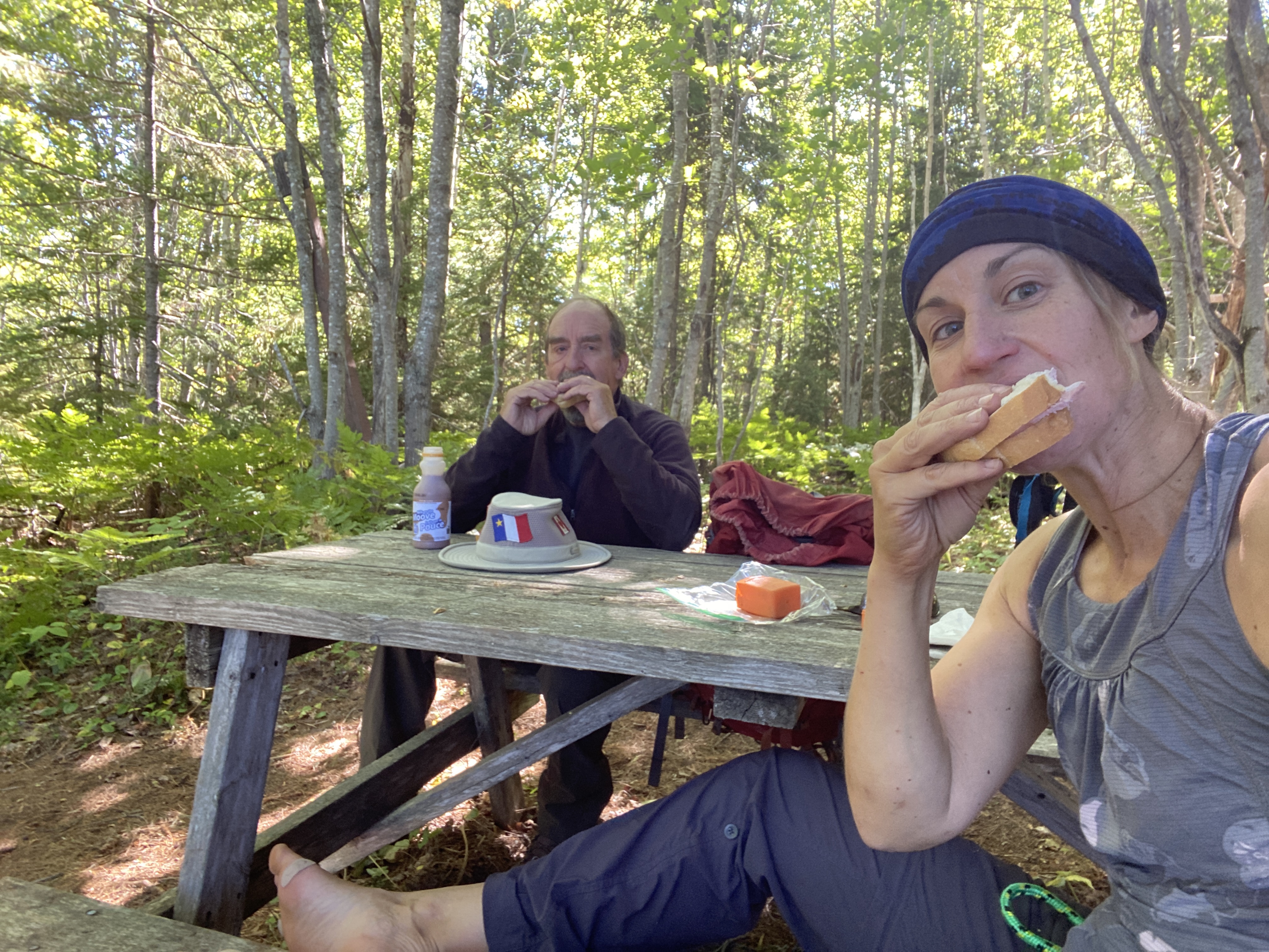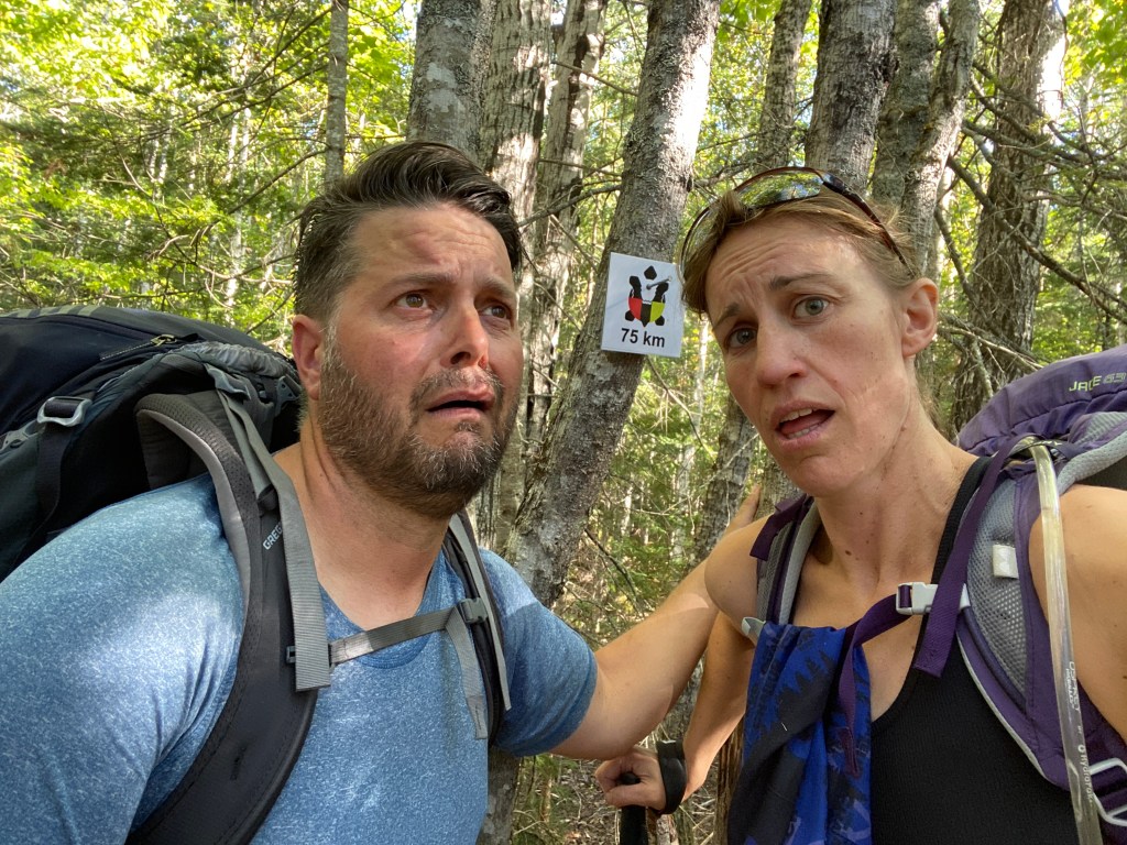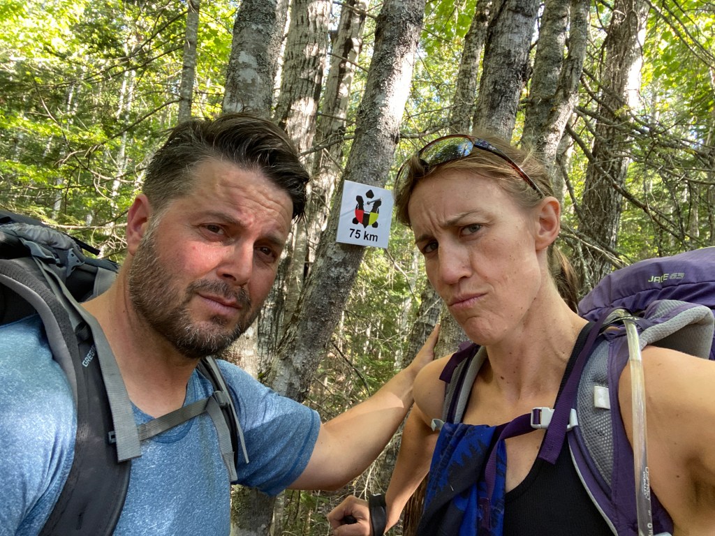We ran into the group who’s running the whole trail in 2 days, in a relay. Ryan, Roxanne and their crew. Today was suppose to be the first day of a the new “Mi’gmaq 100” race event. But it got canceled, for the same reason that everything else got canceled this year. Not going to mention the name- it was nice being in the forest for 6 days- not hearing anything about it. Nature is clean that way.