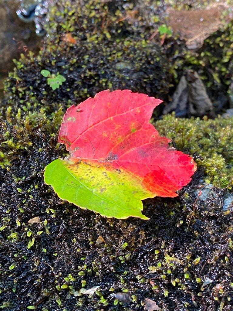 Signs of autumn. Leaves are turning. Ferns are brown and yellow. some leaves are down. It smells like autumn. Ahhhh.. the fresh, crisp smell. I do like that part. But summer’s ending and new season is starting. It’s life’s cycle. Everything comes to an end- and then replaced with something new.