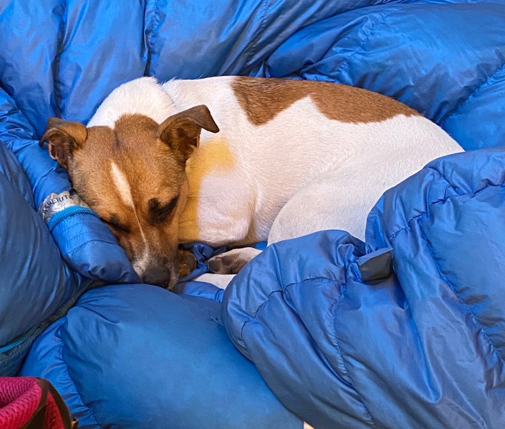 I couldn’t set up the tent fast enough for Macy. She’s already out for the night.