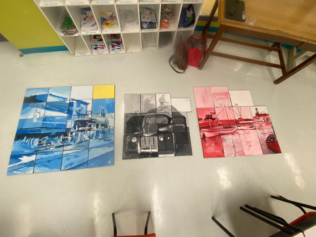 They are now working on their own individual paintings. Something, anything that represents this land and culture. Hopefully we can get this done and do a little vernissage to raise funds for the Acadian flag site.