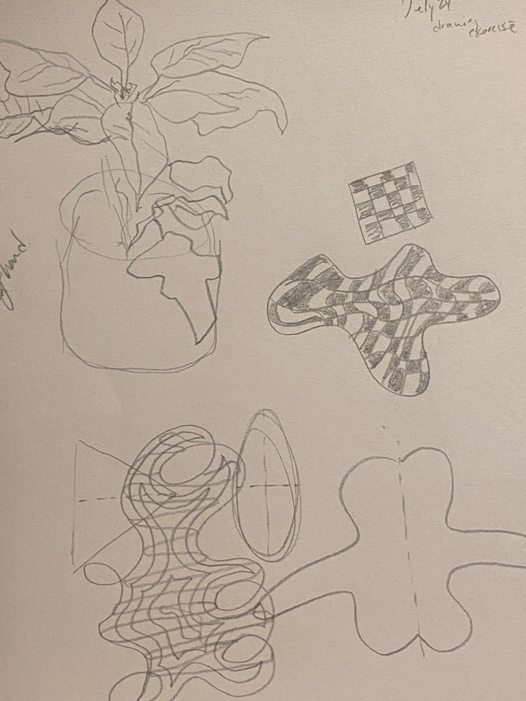 On this very cold day 24 of my sketching challenge, I did a bunch of drawing exercise warmups. Circles, grid, nonstop drawing, left handed , etc.