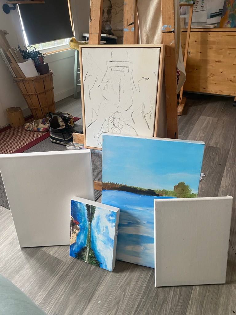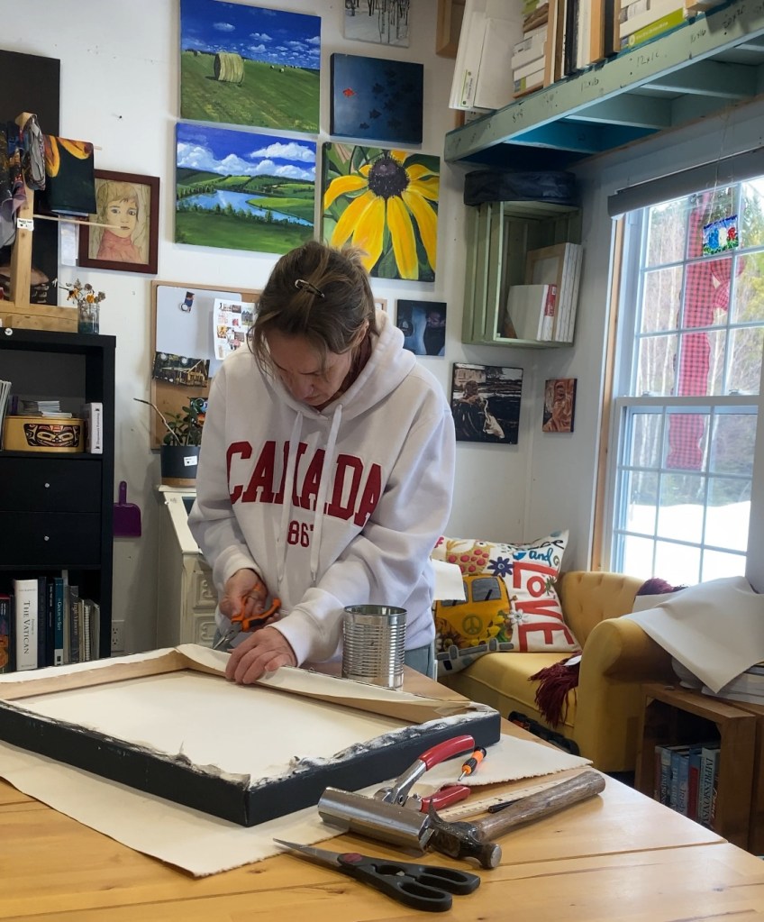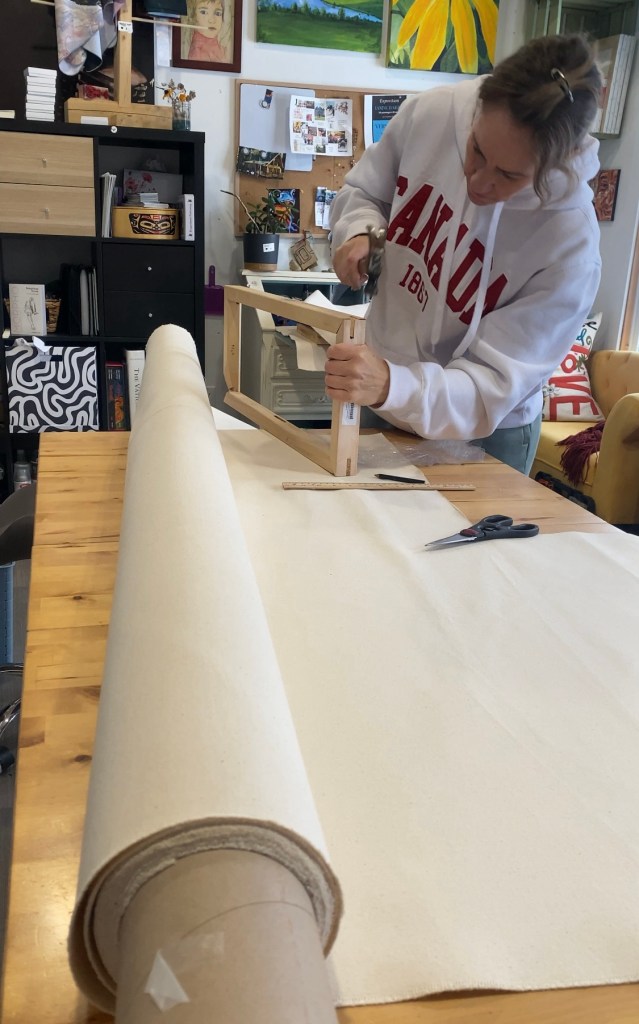 There’s something special about prepping a new canvas from scratch – or giving an old frame a new life- taking out the old canvas, cutting new pieces, stretching the fabric and priming the surface. It’s a moment to connect with the piece and let ideas start brewing.