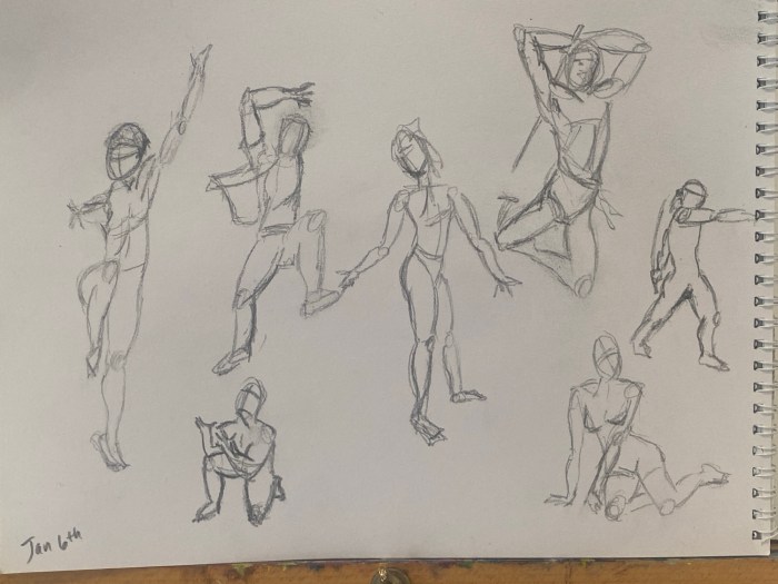 I forgot to post yesterday’s 31 day challenge. So here’s a long one combining yesterday and today’s studio practice . January 7th: Started with 30 seconds figure sketches. I don’t even know if I want to share those. Can you get worse the more you practice? Lol There were lots of Ninja’s 🥷 in the … Continue reading Sketching practice day 7 and 8